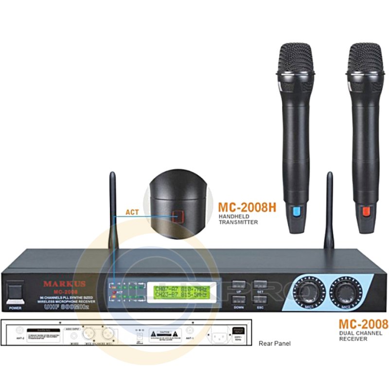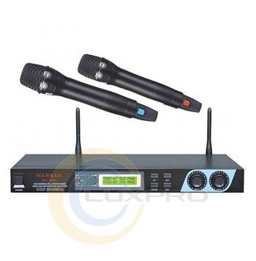 Markus МС 2008 Handheld - радіосистема, яка ідеально підходить для двох вокалістів, весільних ведучих, співу караоке і в інших випадках, коли потрібно застосування двох радіомікрофонів. Радіосистема працює в високочастотному діапазоні, що гарантує бездоганний прийом в радіусі до 100 м. Можливість настройки оптимальної частоти прийому, в мікрофоні їх 200! Підключення та налаштування кожного мікрофона окремо через XLR роз'єм, дозволяє оптимально відбудувати кожен мікрофон. База мікрофона металева зі зручним для настройки рідкокристалічним дисплеєм.