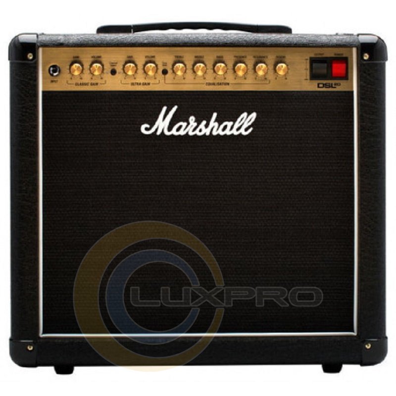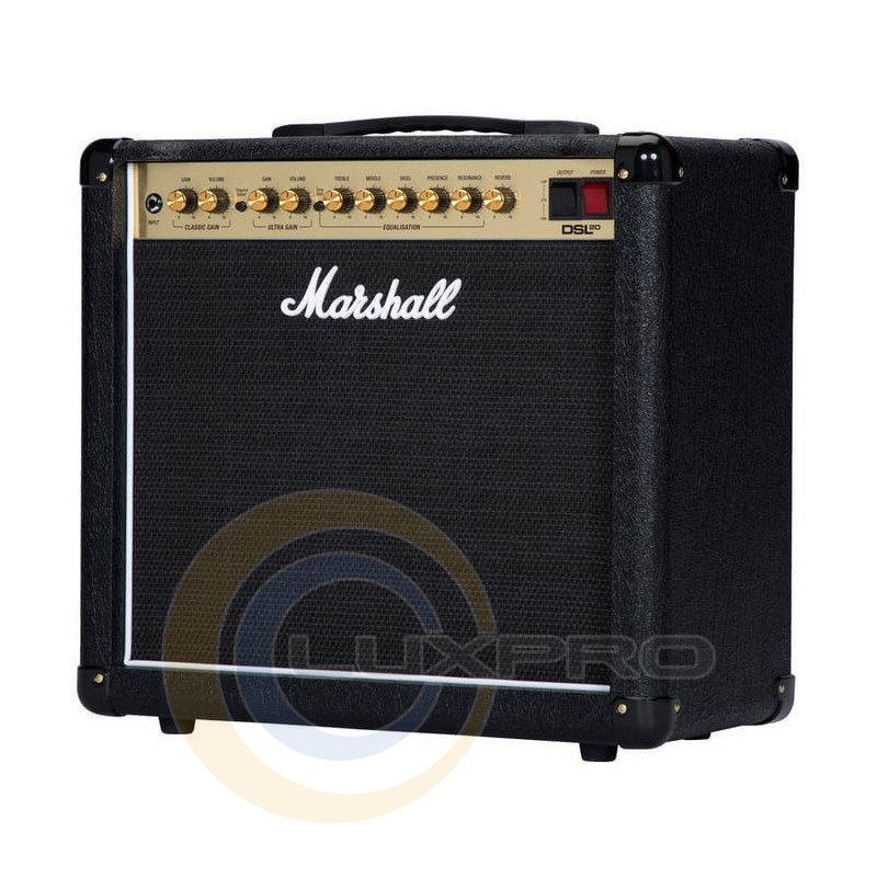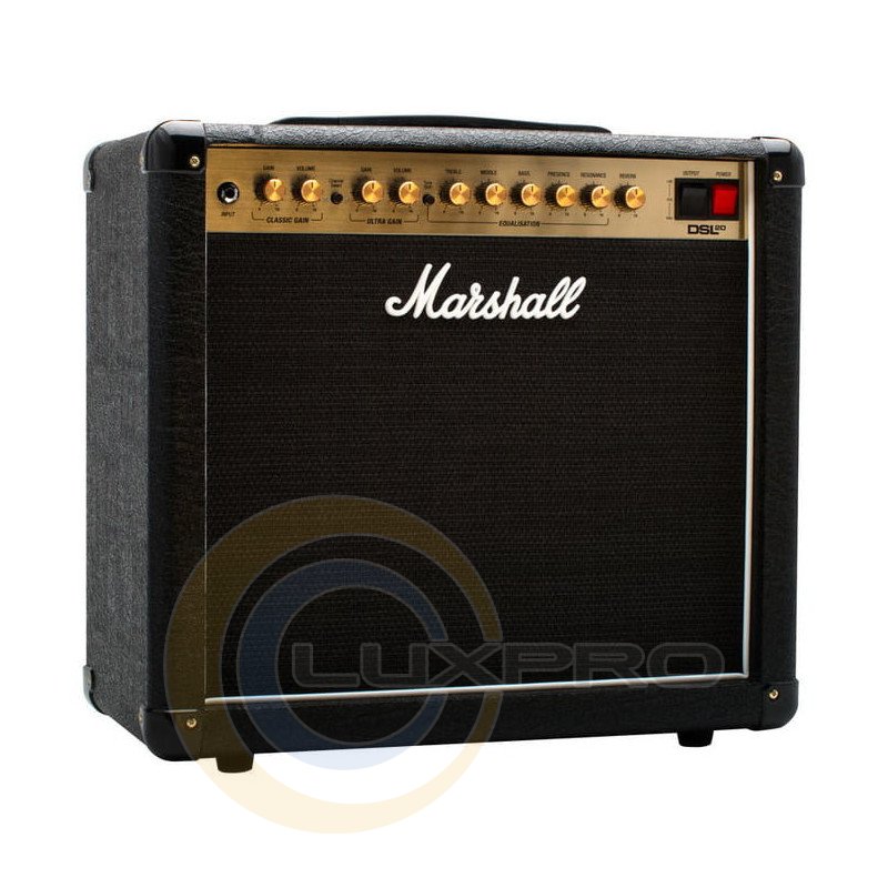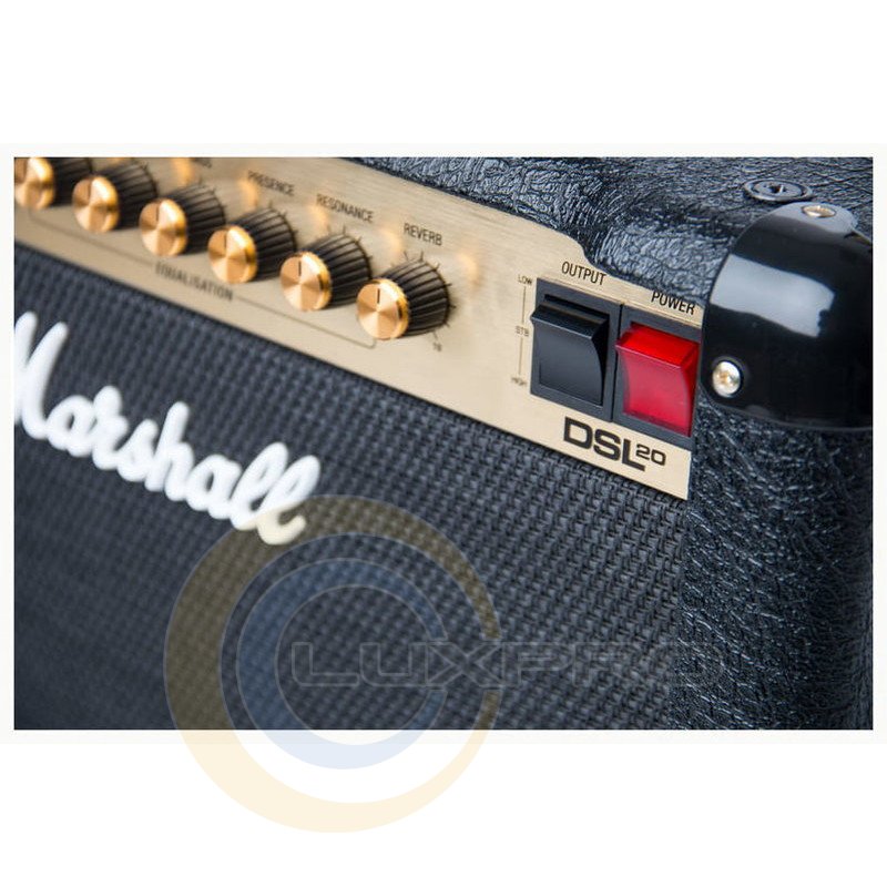 MARSHALL DSL20CR - ламповий комбопідсилювач для електрогітари, потужність 20 Вт, 1 вхід, динамік 1х12 CELESTION G12E-60, лампи - 4xECC83, 2x6V6, 2 канали, 3-х смуговий еквалайзер, цифровий ревербератор, перемикач потужності 15 / 7,5 Ватт, емульований вихід Softube.