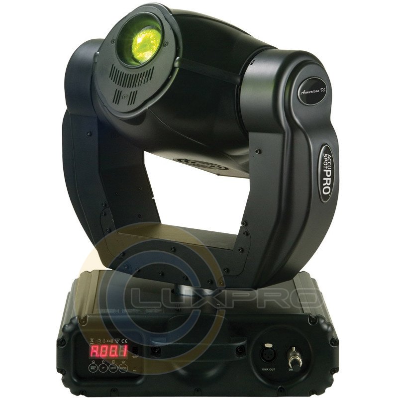 American Audio Accu Spot PRO - рухома голова. Одна з основних переваг Accu Spot PRO це 2 Gobo колеса. Gobo 1: 7 статичних гобо + спот; Gobo 2: 6 обертових гобо + спот. Більш того вона оснащена призменним колесом для використання 3D ефектів 14-канальний DMX контролер, кроковий двигун, підтримка многопроцессорного напруги і безліч інших функцій помітно виділяють Accu Spot PRO в своєму ціновому діапазоні.