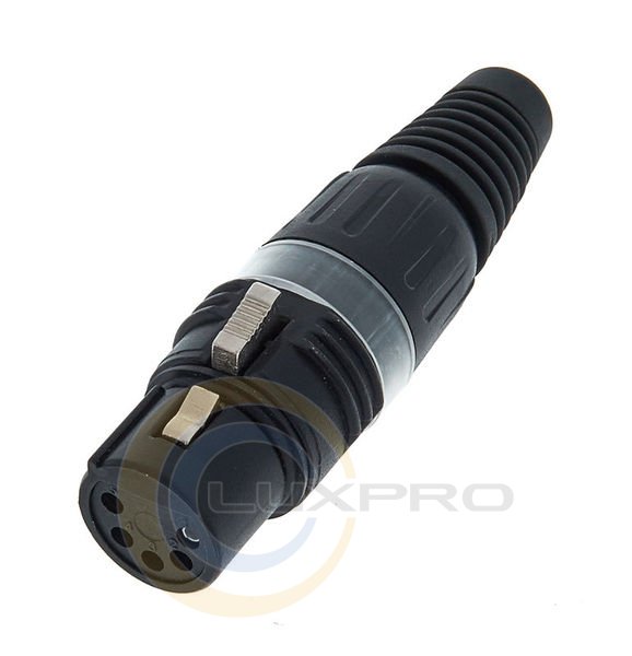 Кабельний роз'єм XLR-5F (мама), корпус чорнений метал, чорний пластиковий ковпачок, срібні контакти, для кабелю з діаметром від 4 мм до 8,5 мм.