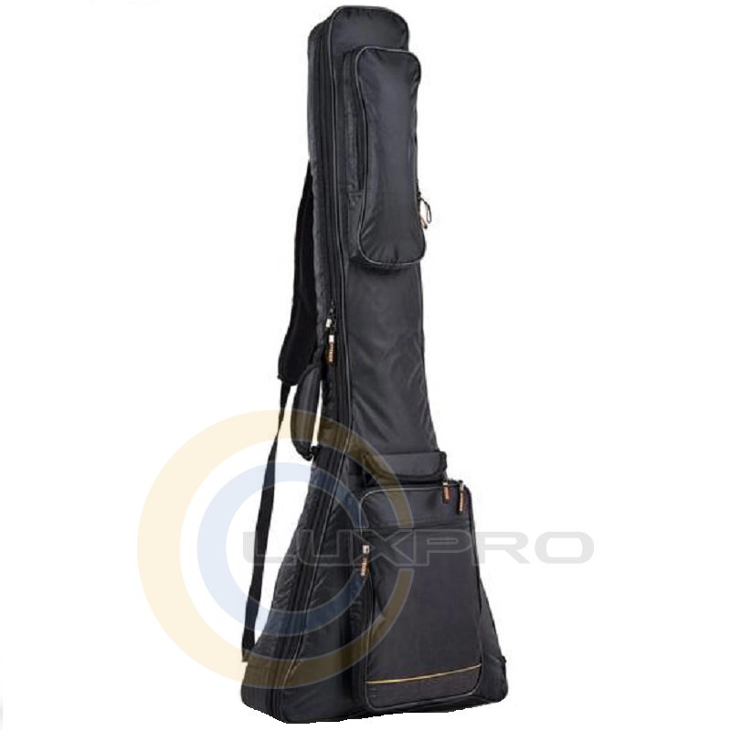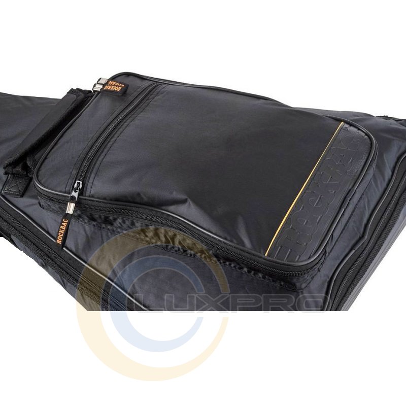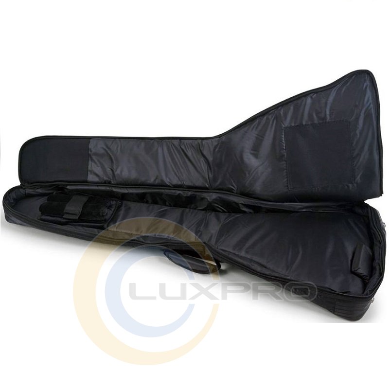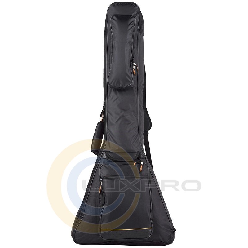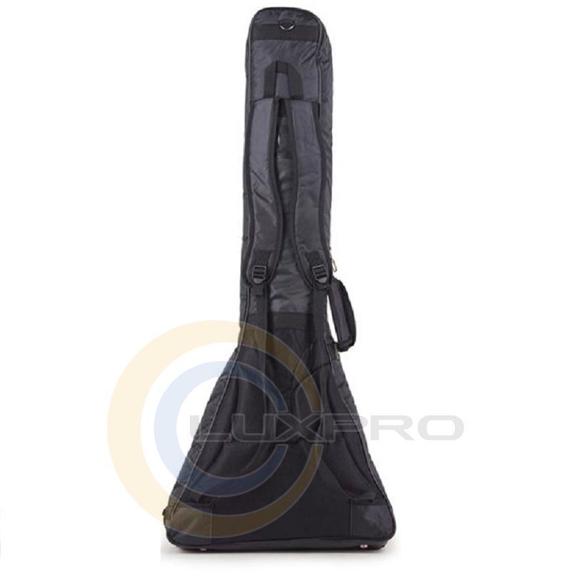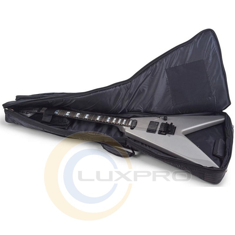 ROCKBAG RB20506 FV B чохол для електрогітари типу Flying V виготовлений з міцного водовідштовхувального матеріалу Rock Tex, товщина захисного шару - 20 мм, внутрішня обробка - міцний чорний нейлон, двосторонній 8 мм замок-блискавка з двома зіперами, має 2 ремені регульованої довжини з пом'якшувальними підкладками 50 мм для комфортного транспортування інструменту за спиною.