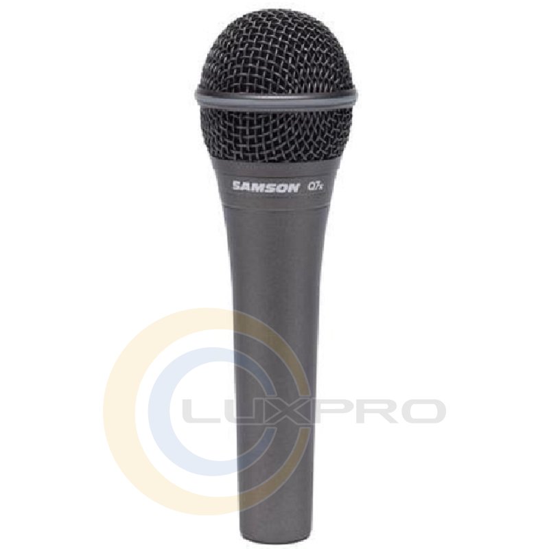 Samson Q7X має суперкардіоїдну діаграму спрямованості. Крім цього, він може похвалитися найширшим динамічним діапазоном і гранично рівною АЧХ. Не можна не згадати і про ще один вагомий перевазі описуваного мікрофона, яке полягає в його здатності витримувати надзвичайно високі рівні тиску звуку. Дана обставина, в свою чергу, дозволяє використовувати Q7X не тільки для роботи з вокалом, але і для інших цілей, наприклад, для подзвучки ударних, різного роду гітарних кабінетів та інших джерел. У висновку необхідно відзначити тільки те, що в комплект поставки зазначеного мікрофона включено міцне кріплення для установки його в стійку, а також стильний і надійний чохол, який полегшує процес транспортування.