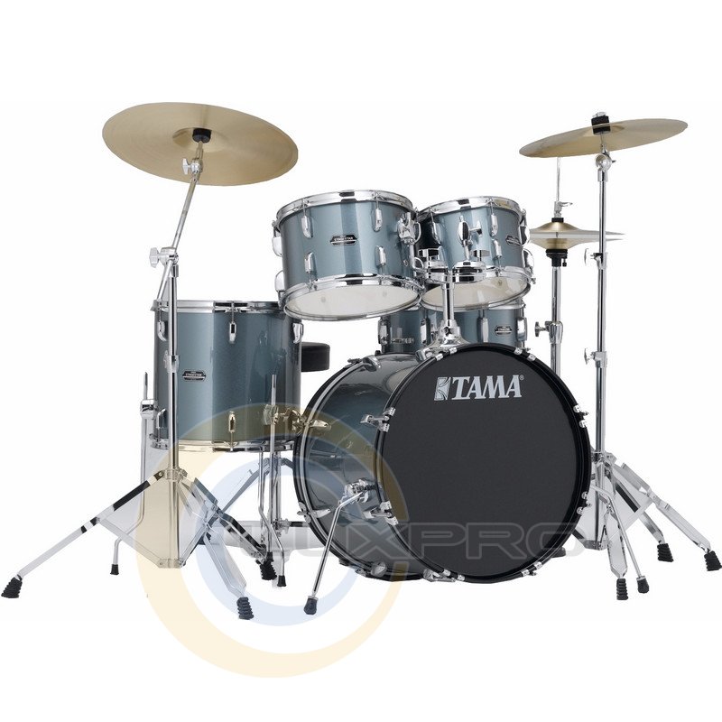 TAMA SG50H6C CSV - ударна установка з 5-ти барабанів серії Stagestar, (бочка 20х16, томи 10х7, 12х8, підлоговий 14х13, малий 14х5.5) зі стійкою для малого барабана, стійкою для хай-хета, стійкою під тарілку, похилій стійкою, педаллю для бас-бочки, стільцем для барабанщика, комплектом тарілок (14 "Hi-hat, 16" Crash, 18 "), матеріал тополя, сірий колір.Характеристики:
