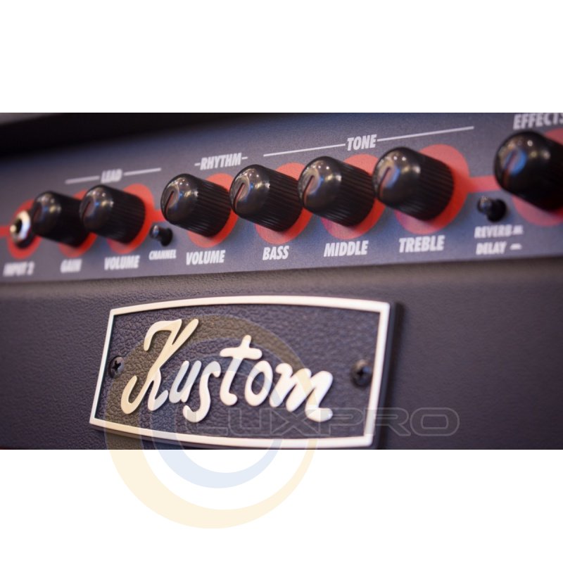 KUSTOM KG112FX 2.0 - комбінований підсилювач поєднує в собі все необхідне для щоденних домашніх занять і репетицій зі своїм музичним колективом. У KG112FX 2.0 два фірмових динаміка Kustom з діаметром 12 дюймів кожен і вбудований підсилювач на 30 Вт RMS, завдяки якому є великий запас потужності і відмінне звучання. Два незалежних канали - Лід і Ритм, для виконання яскравих партій соло і пробивних рифів. Можна легко відрегулювати власний тон за допомогою трисмуговий еквалайзера з окремими ручками для низьких, високих і середніх частот. Для кожного з каналів присутній окремий регулятор гучності, канал "Лід" додатково оснащений ручкою гейна. Щоб зробити звучання більш яскравим і різноманітним, використовується вбудований набір ефектів, представлений реверберацией, Ділі та хорусом. Рівень ефекту регулюється за допомогою поворотної ручки "Effects Level". Всі елементи управління зручно розташувалися на фронтальній панелі для максимально швидкого доступу до них.
