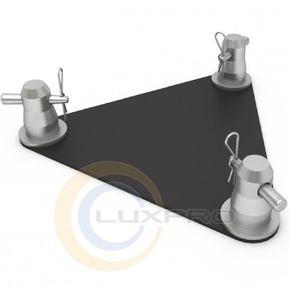 База-підставу, призначена для вертикальної установки ферм трилайт шириною 290 мм. Завдяки своїй конструкції має привабливий, не громіздкий вигляд і велику витривалість, високу стійкість до впливу на них великих навантажень. Із застосуванням наших систем можна створювати різноманітні конструкції в залежності від поставленої мети. У тому числі алюмінієві ферми можуть бути підставою конструкції даху сцени, можуть застосовуватися для створення конструкцій виставкових павільйонів, конструкцій для кріплення проекційних і LED екранів, секцій для розташування звукового і освітлювального устаткування. Якість кожної ферми знаходиться на максимально можливому для подібного виду виробів рівні, що підтверджено сертифікатами ISO DIN 4113 і TUV, а кожен елемент пройшов кілька стадій перевірки якості.Характеристики: