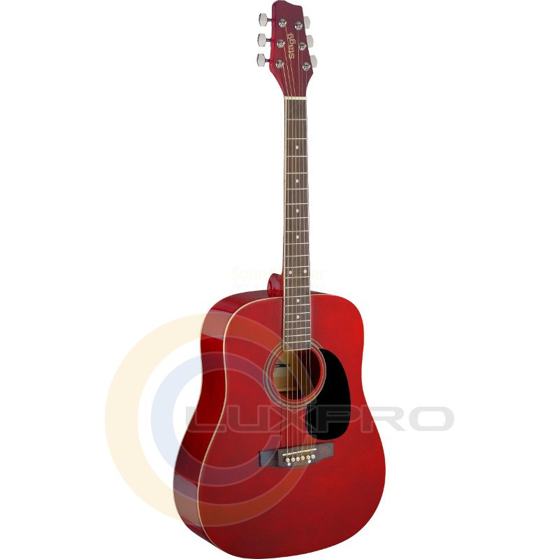 STAGG SA20D RED - акустична гітара, яка володіє відмінною якістю збірки і доступною ціною. Великий корпус типу "дредноут" повністю виготовлений з липи. Він забезпечує досить гучне і виразне звучання. Для грифа використовувався нато з накладкою із тополі. У SA20D 20 ладів з білими маркерами у вигляді точок для більш зручної орієнтування під час виконання. Бридж гітари також виготовлений з палісандра. За настройку відповідають відкриті металеві кілочки з нікелевим покриттям, які відрізняються простою конструкцією і високою стабільністю. Модель SA20D RED виконана в червоному кольорі з зовнішнім покриттям глянсовим лаком. Інструмент стане прекрасним вибором для музиканта-початківця .