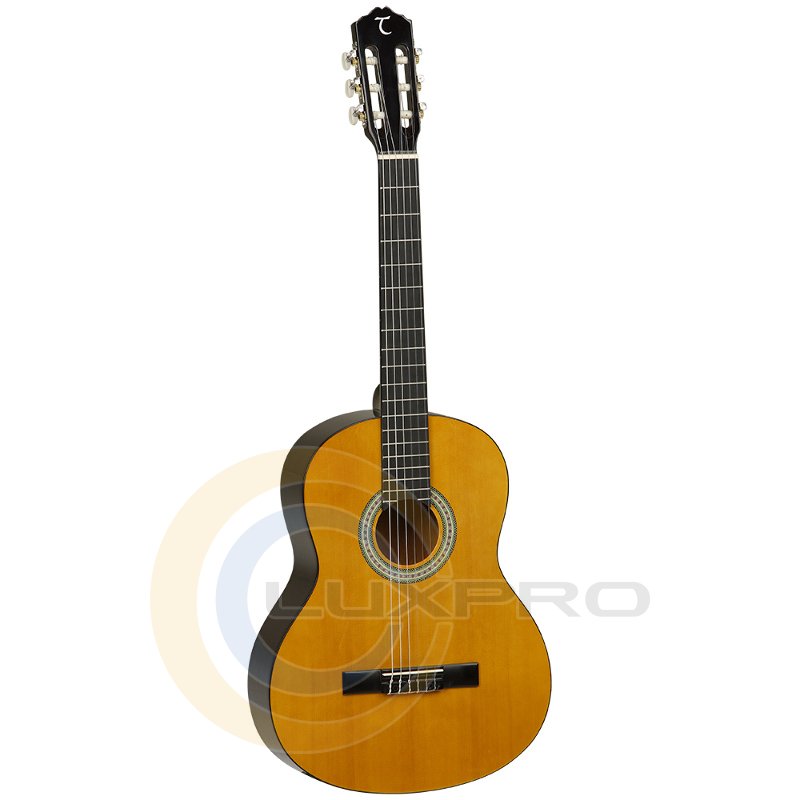 Tanglewood DBT44 - шестиструнна класична гітара відмінний варіант для початківців музикантів, пропонує їм хорошу якість звуку і збірки. Верхня дека гітари зроблена з ялини, а нижня дека і обичайка - з липи. До корпусу надійно кріпиться гриф, виготовлений з червоного дерева. На нього відмінно лягла накладка з липи. На вершині грифа розташувалися по обидва боки білі кілки виготовлені з міцного ABS-пластика, які спільно зі струнотримачем з липи надовго збережуть обраний лад.