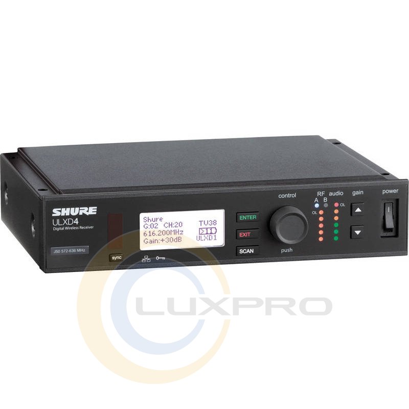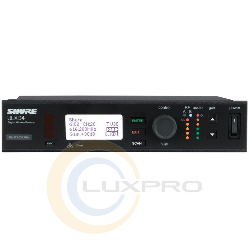 Одноканальний бездротовий цифровий приймач Shure ULXD4E серії ULX-D. Нова цифрова бездротова система з найвищою сходинкою лінійки середньої цінової категорії з 3 варіантами приймача. Системні інтегратори (і AV консультанти) РА / AV, прокатні і продакшн компанії.