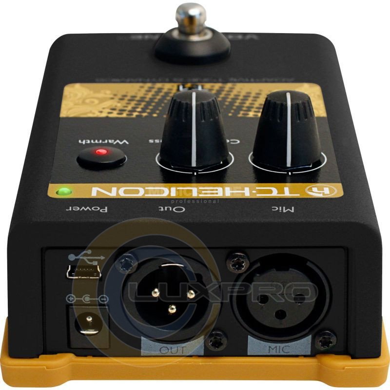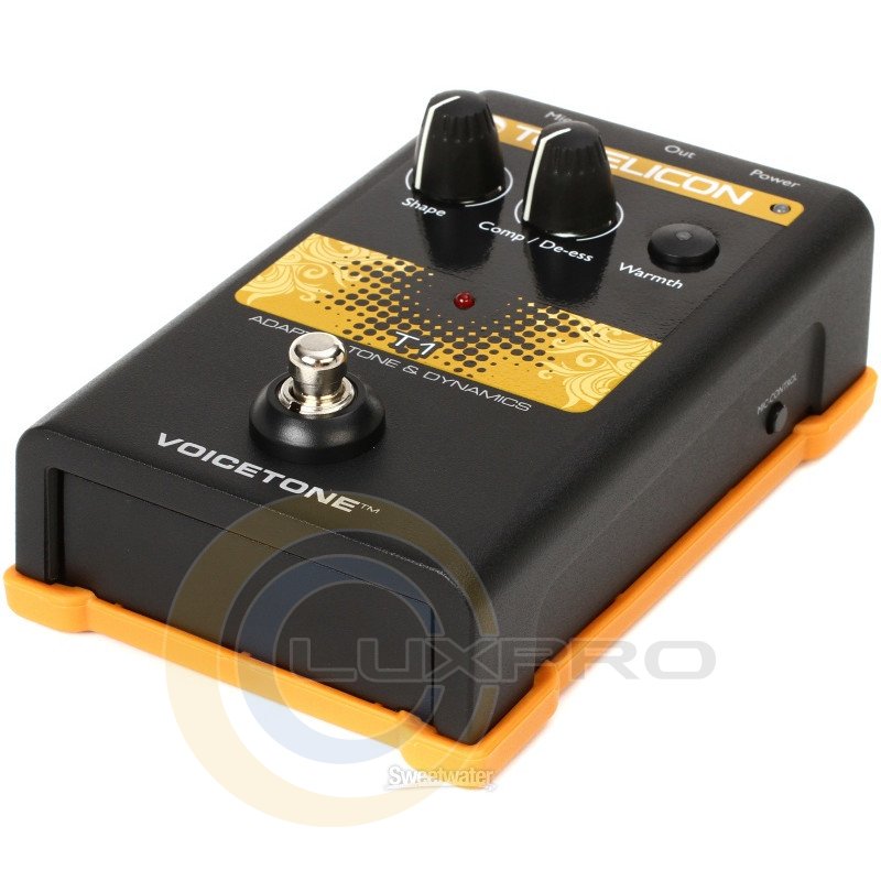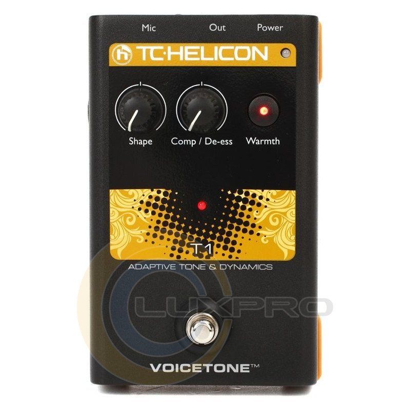 TC Helicon VoiceTone T1 - педаль для вокалістів з корекцією інтонування, EQ, компресором і Де-Ессер, 1 вхід, 1 вихід, USB, блок живлення і USB кабель в комплекті. Педаль VoiceTone T1 допоможе керувати еквалізацією і динамікою вокальної партії за допомогою простого інтерфейсу управління. Всі нові педалі мають usb-вихід для взаємодії з ПК і підтримують нову розробку компанії - технологію Mic Control. А нова модель вокального мікрофона TC Helicon MP-75 за допомогою функції Mic Control, дозволяє включати і вимикати зовнішні ефекти.Mic Control - функція, пропонована новим вокальним мікрофоном TC-Helicon. Модель MP-75 має спеціальну кнопку прямо на корпусі мікрофона, за допомогою якої можна включати або відключати зовнішній ефект. Серед пристроїв обробки підтримують ноу-хау все моделі нової лінійки VoiceTone Singles, а також процесори ефектів VoiceLive 2 і VoiceLive Touch.Характеристики: