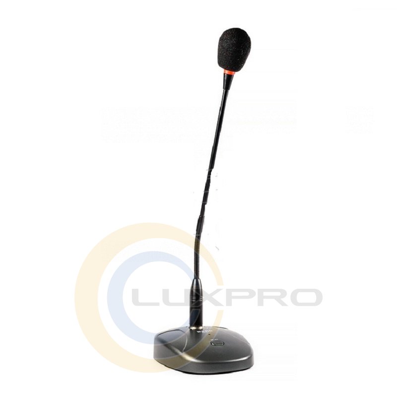 RCM-1A - мікрофон електретний настільний конденсаторний на гнучкій ніжці для передачі мови.Призначений головним чином для передачі мови: оголошень в системах оповіщення дискусії в системах озвучування, різного роду конференцій. Унікальна функція це світиться кільце, яке показує активність мікрофона. У мікрофона висока ніжка.Характеристики: