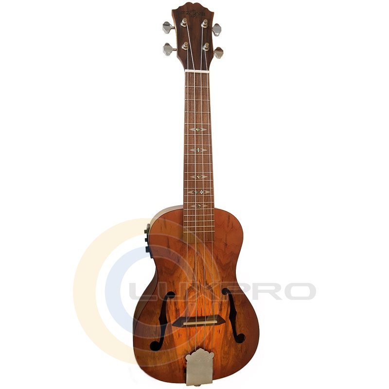FZONE FZU31EQ concert - укулеле, красивий і багатофункціональний музичний інструмент для концертних виступів. Корпус цієї компактної гавайської гітари виготовлений з ретельно відібраного червоного дерева (ламіноване). Для виготовлення грифа використовувалося африканське червоне дерево (окуме), накладки грифа і містка - сонокелінг. На верхній деці присутні спеціальні вирізи у формі літери "f". Серед інших особливостей даної моделі варто виділити хромований кілковий механізм закритого типу, призначений для настройки інструменту, а також інкрустацію накладки, виконану з абалоне.