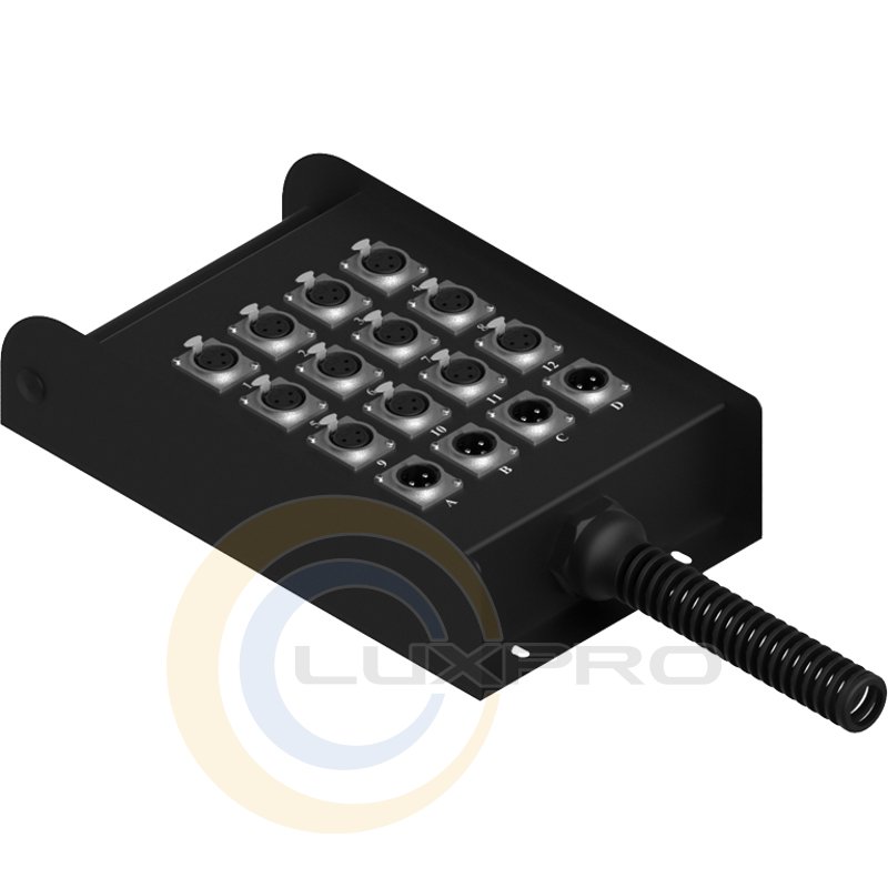 - вбудовані роз'єми: гніздо XLR 3pin - 12 шт., штекер XLR 3pin - 4 шт.;