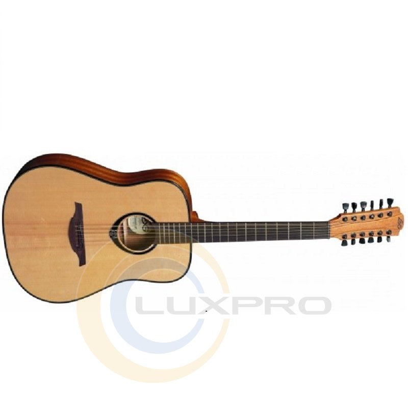 Tramontane T66D12 - акустична гітара серії Tramontane 66 відрізняється своїм глянсовим лаком і чудовим дизайном розетки з окситанська хрестом з натурального клена. Завдяки глибокому глянсовому покриттю, гітари з найбільш доступною серії T66 виглядають також добре, як і звучать. Верхня дека з ялини, нижня дека і обичайки з червоного дерева підкреслені окантовкою чорного і кольору слонової кістки, яка гармонійно поєднується з розеткою, фурнітурою і логотипом на головці грифа. Гриф з махагони покритий тонким матовим лаком French Satin, що забезпечує комфорт і зручність при грі, а палісандрова накладка прекрасно доповнює різьблений бридж.