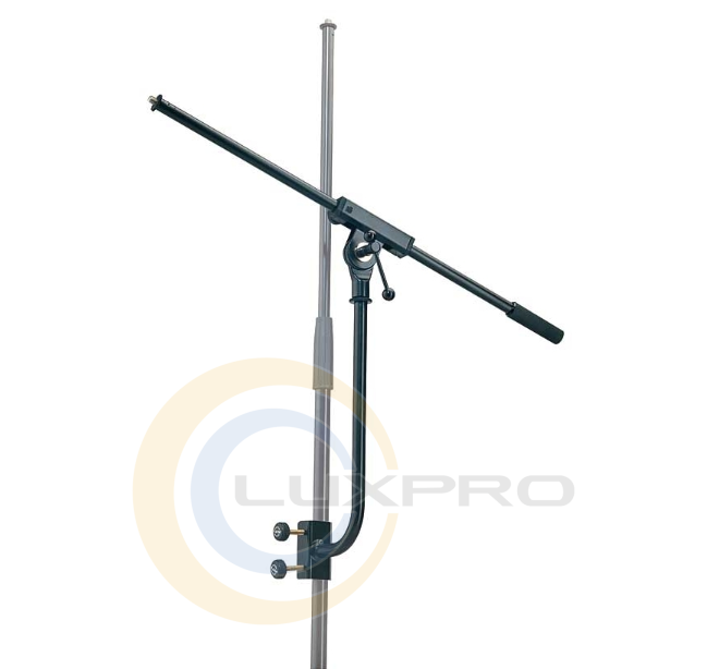 Кріпиться до трубок штатива діаметром від 15 до 22 мм. Призматичний з'єднувальний механізм. У комплекті з регульованою по довжині і куту нахилу поворотною стрілою.