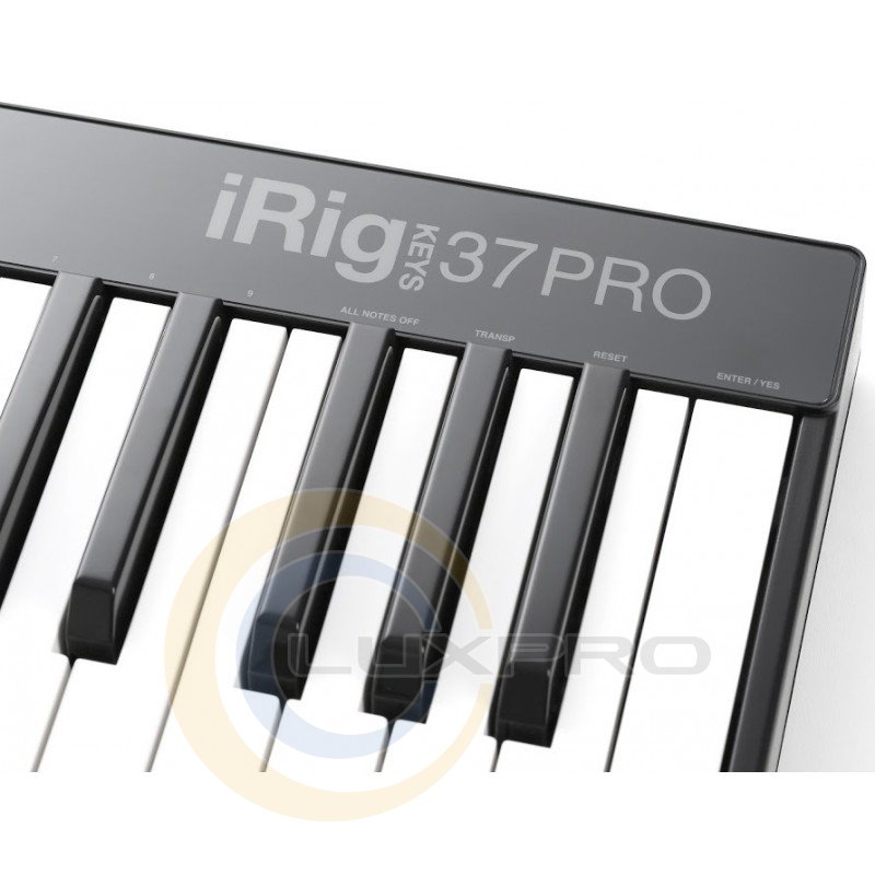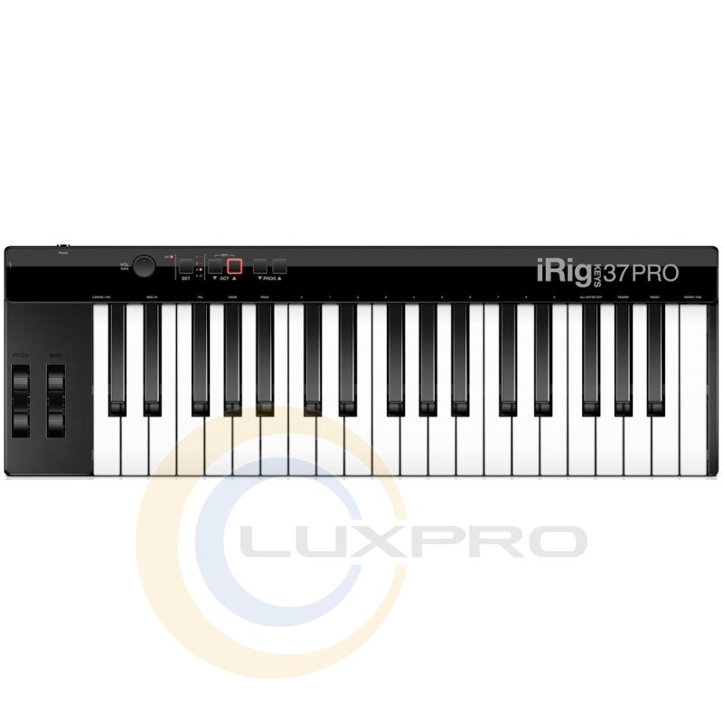 Маючи компактні розміри міді клавіатура IK MULTIMEDIA IRIG KEYS 37 PRO може похвалитися багатим функціоналом. Колеса Modulation і Pitch, регульована чутливість клавіатури, вхід для педалі сустейна або експресії, кнопки octave up / down і volume / data енкодер. IK MULTIMEDIA IRIG KEYS 37 PRO має інтуїтивно просту в управлінні контрольну панель з 5-ю м'якими кнопками з підсвічуванням і енкодером volume / data.