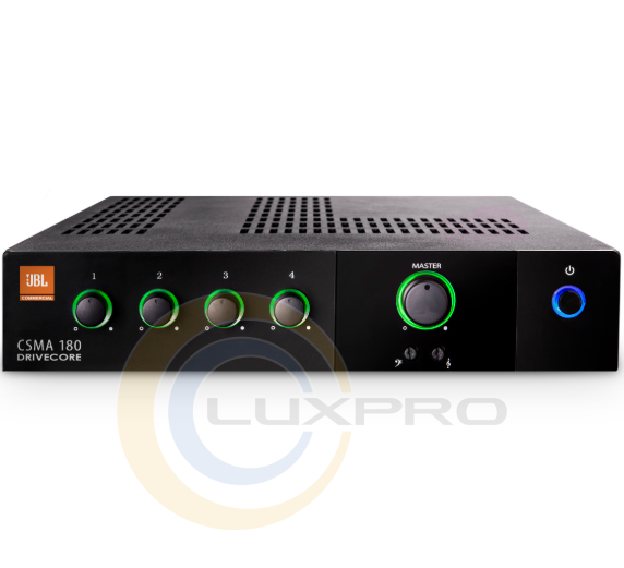 JBL CSMA180 - це мікшер з підсилювачем спроектований для комерційного використання. Технологія DriveCore значно зменшує розмір і вага пристрою. Модель оснащена універсальним блоком живлення.Характеристики: