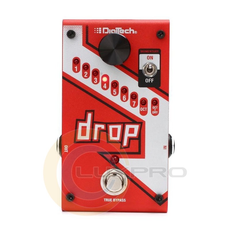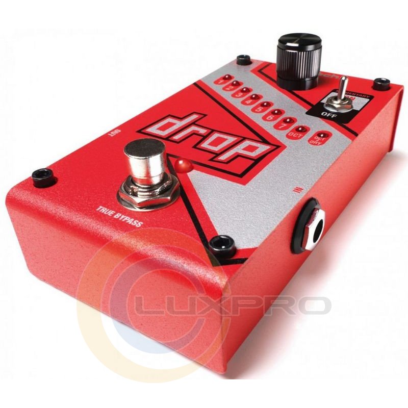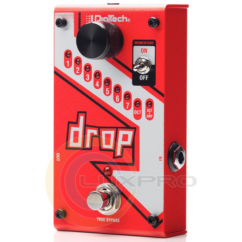 Педаль ефектів Digitech DROP - поліфонічний ефект зниження ладу, зниження ладу - до 7 півтонів, октава, октава + чистий. DigiTech Drop спеціальна педаль поліфонічного ефекту зниження ладу, яка дозволяє знижувати лад від одного півтони до повної октави. Міняйте свій лад не змінюючи гітари! Педаль обладнана перемикачем режиму роботи ножного перемикача (з фіксацією або без фіксації).Характеристики: