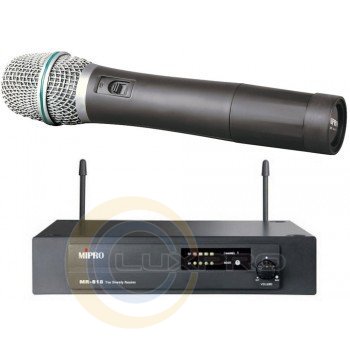 MIPRO MR-818 / MH-80 / MD-20 Condenser - радіосистема з ручним конденсаторним кардіоїдним мікрофоном. Радіосистема Диверситивний одноканальна UHF діапазону з фіксованою частотою. У комплекті: приймач MR-818, ручний мікрофон MH-80 з конденсаторним кардіоїдним капсулем MU-79 і мікрофонний тримач MD-20. Пластиковий корпус, індикація. Ширина приймача 1 / 2U річка.