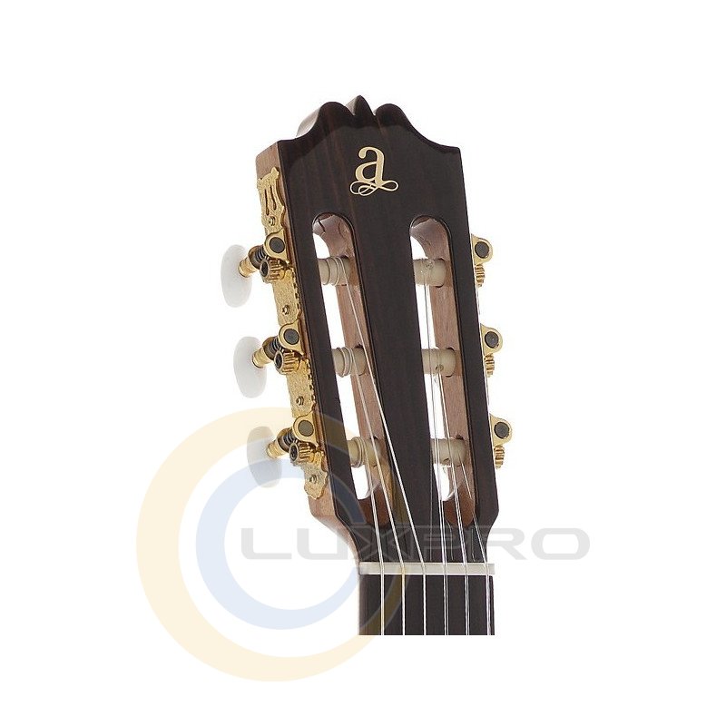 ADMIRA A6 - класична гітара, верхня дека: цілісний кедр, нижня дека: палісандр, обичайка: палісандр, гриф: червоне дерево, накладка грифа: палісандр, бридж: палісандр, механіка: позолочені колки, колір: натуральний глянсовий, виробництво: Іспанія.