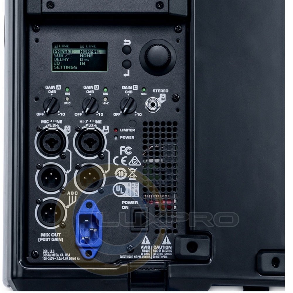 - коннектори: 2 x замикаються XLR / F 1/4 "комбіновані (Mic / Line Вхід і Hi-Z / Line Вхід), 1 x 3.5 мм TRS (стерео вхід), 2 x XLR / M (Loop-thru вихід), 1 x XLR / M (Mix Вихід), 1 x IEC power коннектор;