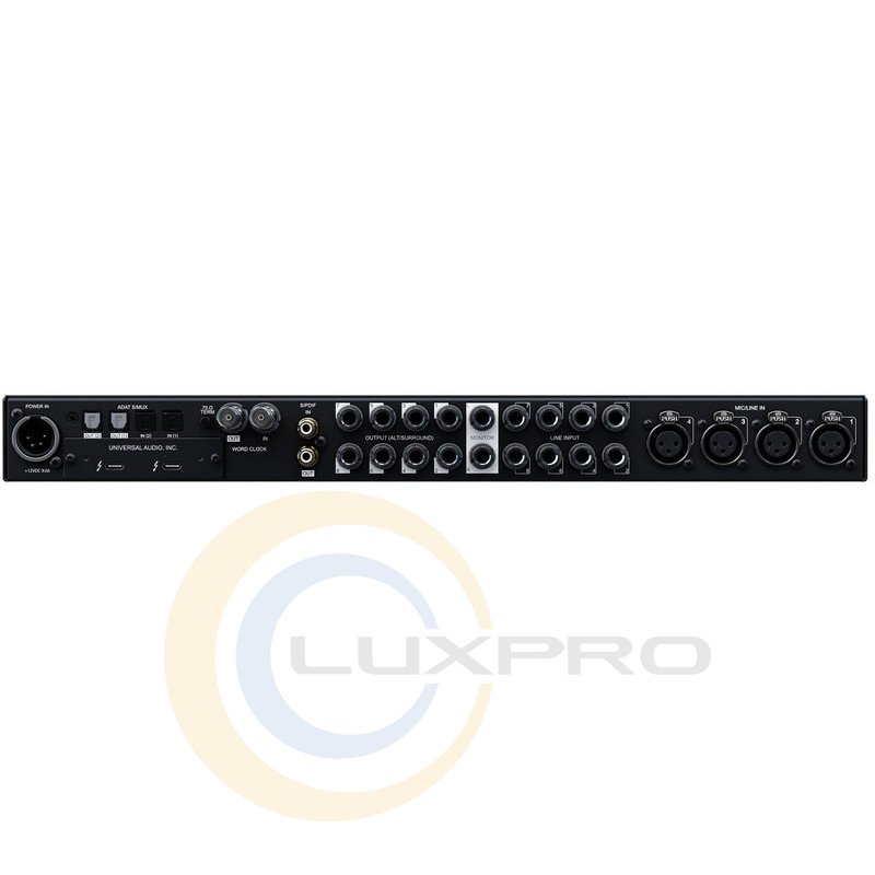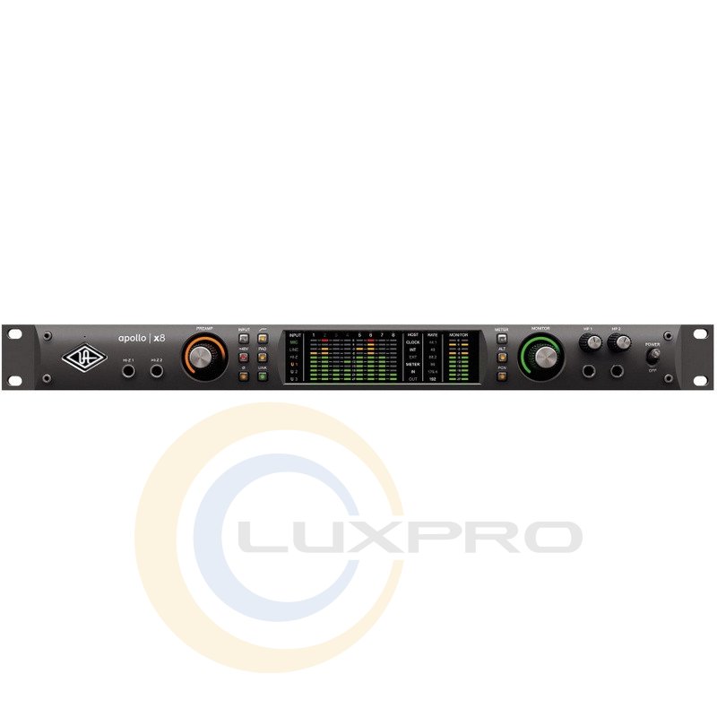UNIVERSAL AUDIO Apollo X8 - Thunderbolt 3 аудіоінтерфейс є одним з останніх доповнень до шанованої серії Apollo від Universal Audio. Серія аудіо інтерфейсів Apollo відома своєю винятковою надійністю і чудовою якістю звуку. Apollo X8 грунтується на цьому, включаючи нову обробку UAD HEXA в режимі реального часу. Він забезпечує перетворення аудіофайлів вищого класу, а також можливість запису з майже нульовою затримкою через включені емуляції предусилителей. Призначені для користувача А / Ц і Ц / А-конвертери забезпечують високоякісне аудіо перетворення 24-біт / 192 кГц. Абсолютно нові аналогові схеми забезпечують виняткове відтворення звуку. Аудіоінтерфейс UNIVERSAL AUDIO Apollo X8 забезпечує динамічний діапазон 129 дБ і -118 дБ загальних гармонійних спотворень + шум, що робить його ідеальним для використання з широким діапазоном джерел звуку. Інтерфейс 18 x 24 включає в себе чотири мікрофонних попередніх з підтримкою технології Unison, а також перемикаються налаштування хедрума для студійного обладнання професійного рівня.Аудіо інтерфейс UNIVERSAL AUDIO Apollo X8 має повністю нової обробкою HEX Core. Ця унікальна технологія використовує шість чіпів DSP, які забезпечують більше потужності для обробки UAD плагінів, в порівнянні з попередніми інтерфейсами Apollo. Дана особливість дає вам можливість запускати більше модулів UAD одночасно. Доступні плагіни UAD забезпечують обробку ваших джерел звуку в реальному часі. Вони представлені класичними рекреаціями еквалайзерів Pultec і передовими емуляції різних предусилителей. Завдяки цьому ви зможете підняти власні можливості запису на наступний рівень, для досягнення насиченого тривимірного аналогового звуку. Технологія мікрофонного попереднього посилення Universal Audio Unison забезпечує виняткову відтворення звуку при строгому увазі до деталей. Дана технологія дозволяє вам з високою точністю відтворювати приємні тони класичного студійного обладнання та предусилителей.Інтерфейс UNIVERSAL AUDIO Apollo X8 також забезпечує всебічну підтримку 7.1-канального об'ємного звуку, що ідеально підходить для аудіо / візуальної роботи. Це ідеальне рішення для звукорежисерів і продюсерів, що працюють з аудіо і музикою для ТВ, відеоігор та інших. Він також включає в себе можливість вибору +24 dBu режиму для сумісності з мікшерний консолями і високоякісним аудіо обладнанням. У вашому розпорядженні вбудована зворотний зв'язок і репліки для спілкування з артистами.Одна з найбільш унікальних особливостей інтерфейсу - це можливість об'єднати до чотирьох пристроїв Apollo і шести пристроїв UAD-2, що відкриває абсолютно новий світ можливостей, коли мова йде про висококласних студійних проектах. Інтерфейс має два вбудованих порту Thunderbolt 3, які сумісні з Thunderbolt 1 і 2. Це може збільшити обчислювальну потужність, шляхом додавання швидких входів / виходів з високою пропускною здатністю і DSP у міру зростання вашої установки.AUDIO Apollo X8 поставляється з комплектом плагінів Realtime Analog Classic Plus. Цей комплект включає в себе точні відтворення класичного звукового обладнання, включаючи автентичні емуляції Teletronix LA-2A, 1176LN і компресори Fairchild. Він також може похвалитися емуляторами гітарних і бас- гітарних підсилювачів від Marshall і Ampeg для отримання класичного звучання інструментальних тонів. Разом з даними пакетом ви також отримуєте достовірні емуляції найбільш знакових аналогових сигнальних процесорів обробки в історії зву