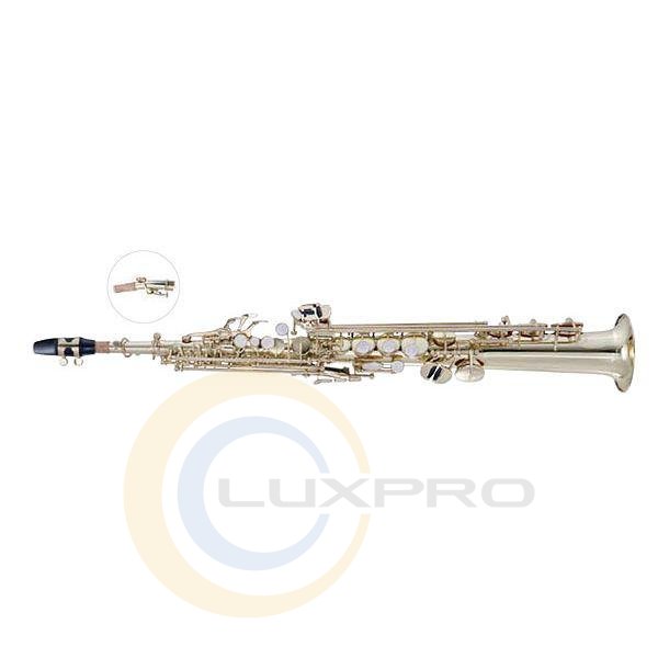 Maxtone TSC21L сопрано-саксофон Сі бемоль, низька Сі клавіша, висока Фа дієз клавіша, діаметр розтруба 95 мм, пряма / кутова шийка, золотий лак, з кейсом.
