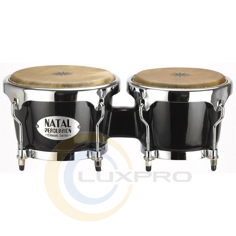 NATAL DRUMS CLASSIC FIBERGLASS BONGO BLACK - бонго, діаметр 7 "і 8.5", матеріал - скловолокно, матеріал мембран - натруальная шкіра, сталеві обручі Comfort Hoop, колір чорний.