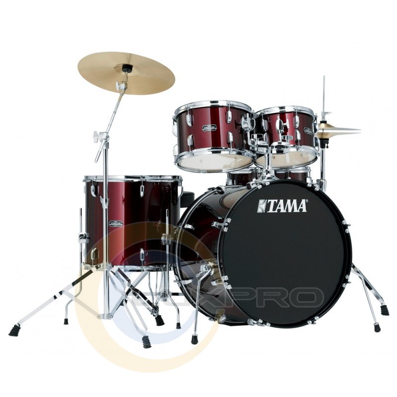 TAMA SG52KH4 WR - ударна установка з 5 барабанів серії Stagestar, бас-барабан 22x16 ", томи 10х7" і 12х8 ", флор-том 16х15", малий 14х5.5 ", подвійний тому-холдер, педаль для бас-барабана, стійка під малий, стійка для хай- хета, похила стійка, фурнітура хром, колір червоний.Характеристики: