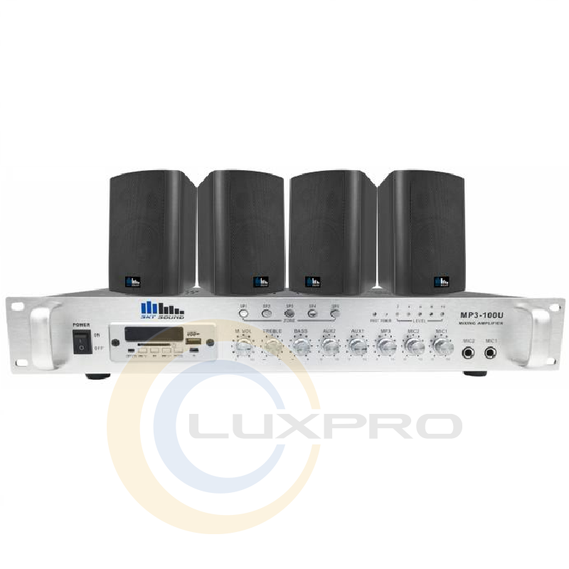 Акустичний комплект Sky Sound WS-3004 - складається з нестенних гучномовців NS-30T (Black) і трансляційного підсилювача MP3 100U (5-zone). Комплект призначений для будь-якого приміщення, де необхідна повнодіапазонна акустична система для відтворення музики переднього плану і фонового звучання.