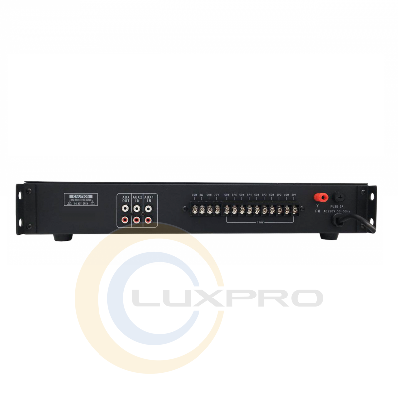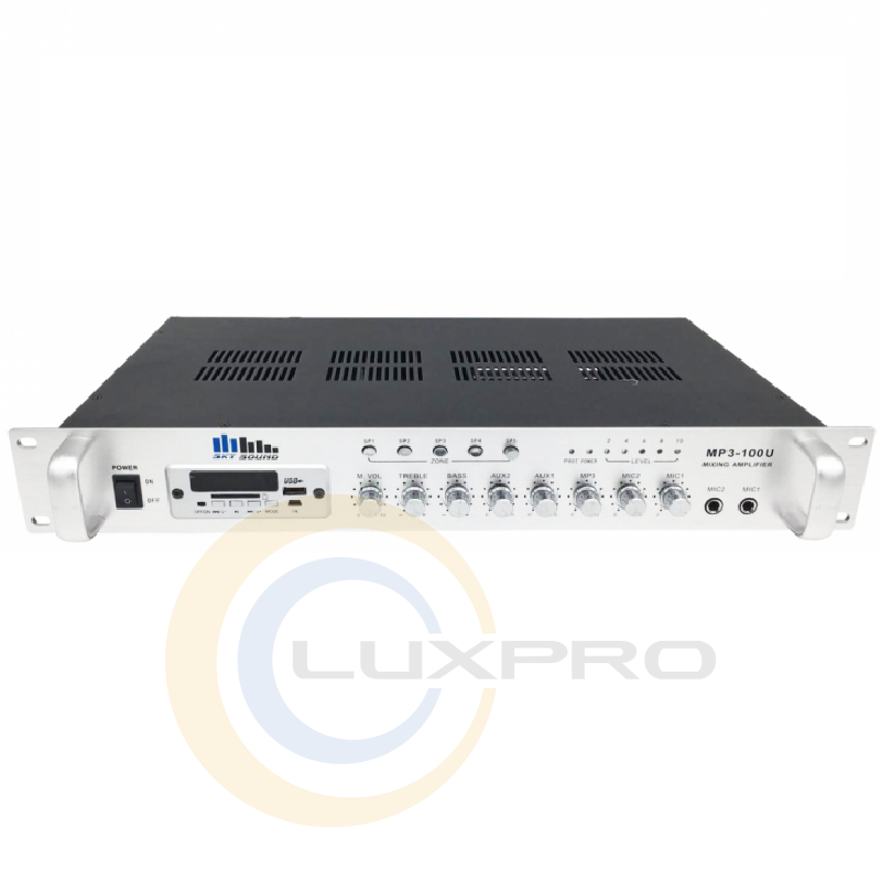 Трансляційний підсилювач потужності Sky Sound MP3 100U (5-zone) призначений для трансляції музичних програм і мовних повідомлень самостійно на базі відповідного обладнання або в складі системи оповіщення.