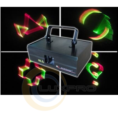 Повноцінний 3D лазер з величезною кількістю препрограмм, з об'ємною анімаційної графікою, в якому мікс RGY кольоровий лазер з 3D об'ємної геометричної графікою і повної анімаційної графікою створює неймовірно красиві фігури. Для досягнення найбільшого ефекту потрібно використовувати Хейзер або генератор диму.Характеристики: