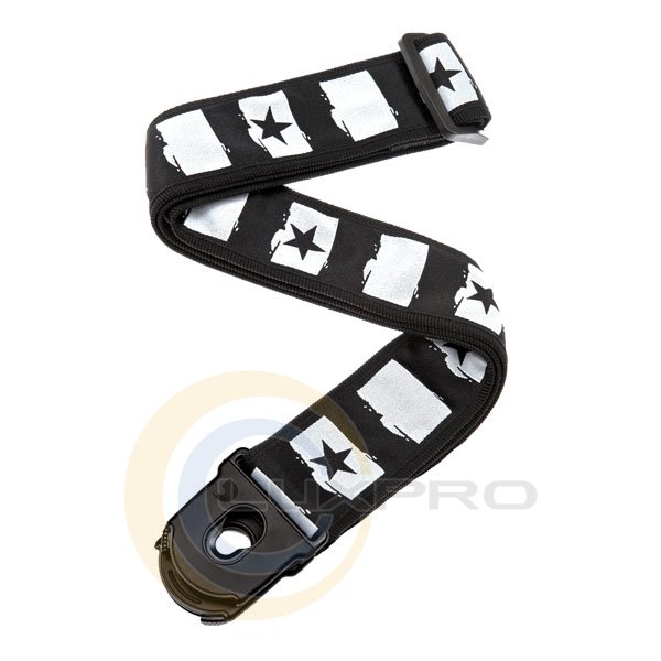 Ремінь гітарний Planet Lock Rock Star, покращений механізм замків для кріплення на інструменті, колір: сіро-чорний.