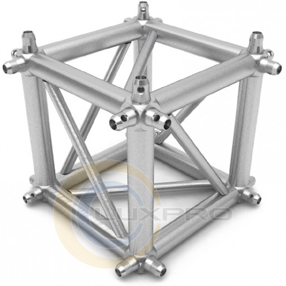 Спеціально розроблений шестикутний кут можна перетворити від 2 до 6-сторонній кут, встановивши гніздові або роз'ємні приймачі на куб. Найсильнішою стороною цього продукту є гнучкість, яка робить його гідним вибором. Ще однією перевагою коробчатого кута є максимальна безпека, вантажопідйомність 164% від серії 390. Куб універсальний - сумісний з усіма провідними системами квадратної ферми на ринку.Ферма QUA 390 A виконана з труби 50 x 3 мм і перемичок 25 x 2 мм. Обладнана конічним конектором - гніздом SZ 02.02. Алюмінієва ферма завдяки своїй конструкції має привабливий, не громіздкий вигляд і велику витривалість, високу стійкість до впливу на них великих навантажень. Із застосуванням наших систем можна створювати різноманітні конструкції в залежності від поставленої мети. У тому числі алюмінієві ферми можуть бути підставою конструкції даху сцени, можуть застосовуватися для створення конструкцій виставкових павільйонів, конструкцій для кріплення проекційних і LED екранів, секцій для розташування звукового і освітлювального устаткування. Якість кожної ферми знаходиться на максимально можливому для подібного виду виробів рівні, що підтверджено сертифікатами ISO DIN 4113 і TUV, а кожен елемент пройшов кілька стадій перевірки якості.Характеристики: