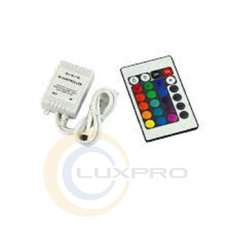 Контролер RGB з інфрачервоним пультом на 24 кнопки 6A PROLUM PL-C-6A-24k-RGB-IR служить для управління RGB-світлодіодними стрічками в широкому діапазоні режимів мигання, яскравості світіння, колірних комбінаціях світіння і частоти перемикання. Все це може перемикатися і працювати "паралельно" - тобто, наприклад, перемикання колірної комбінації може міксувати різними режимами перемикання, зміною яскравості світіння і частотою.