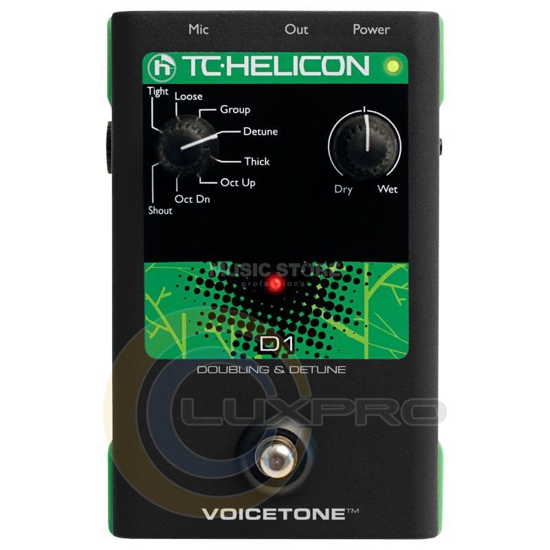 TC-Helicon VoiceTone D1 - це вокальний процесор ефектів, який компактно розташовується на підлозі. До Ваших послуг 8 пресетів, за допомогою яких буде створена необхідна бек-вокальна партія: Group, Detune, Thick, Oct Up, Oct Dn, Shout, Loose, Tight. Зверніть увагу, можна створити такий ефект, ніби хтось поруч співає в унісон, а якщо використовувати функцію співу в октаву, створюється враження, ніби Вас підтримує професійний виконавець!