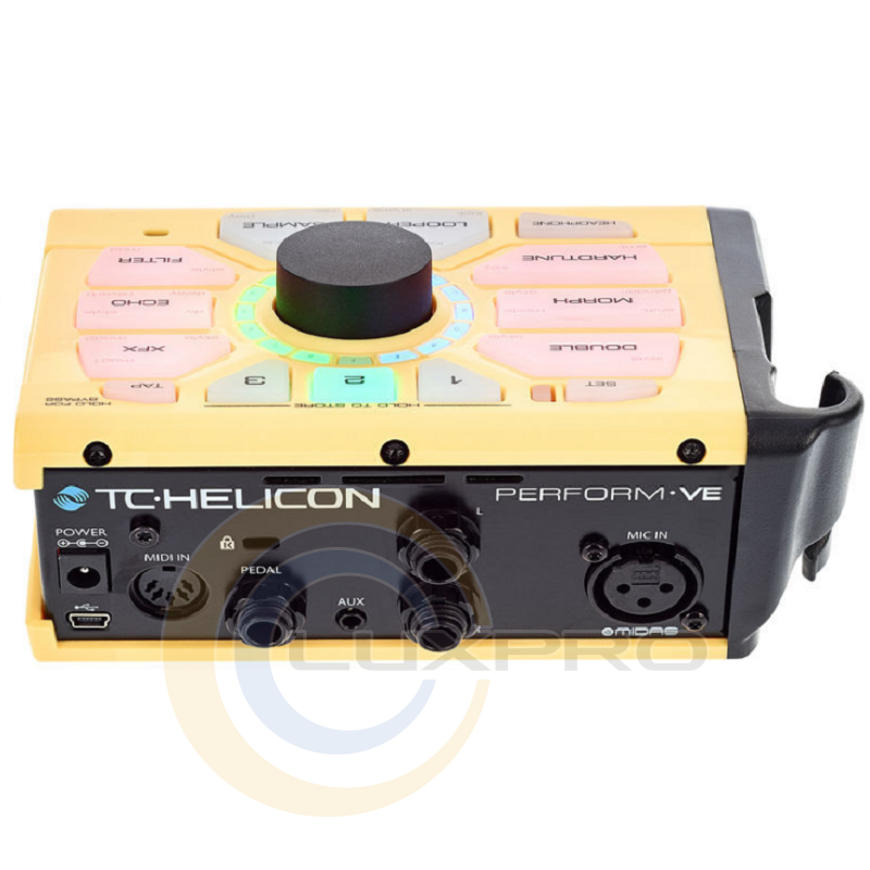TC-Helicon Perform-VE - процесор ефектів для вокалу, 11 ефектів, 1 вхід XLR, 2 виходи Jack, роз'єм для Футсвітч, фантомне живлення 48В, USB, AUX In, MIDI, вихід на навушники, блок живлення і USB кабель в комплекті. TC Helicon Perform-VE Vocal Synth і Drum Looper - це революційний вокальний прилад, створений з максимальним звуковим різноманітністю і гнучкістю, з використанням дискретизації з контролем MIDI-тону, вокального синтезу і інтуїтивно зрозумілого однотактного барабанного петлителя.