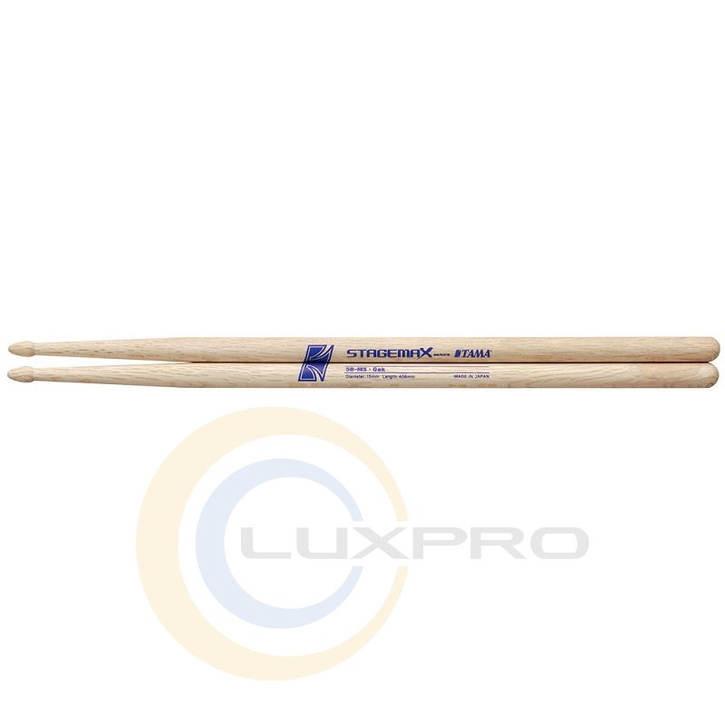Барабанні палички TAMA 5B-MS матеріал дуб, серії Stagemax, дерев'яний наконечник, діаметр 15 мм, довжина 406 мм. Для серії паличок Stagemax ТАМА відмовилися від обробки фарбою і використовували текстуру дерева для більш натурального і комфортного захоплення. Для барабанщиків які граючи працюють до сьомого поту, і іноді відчувають що їх палички вислизають з рук, ці палички є відмінним рішенням.