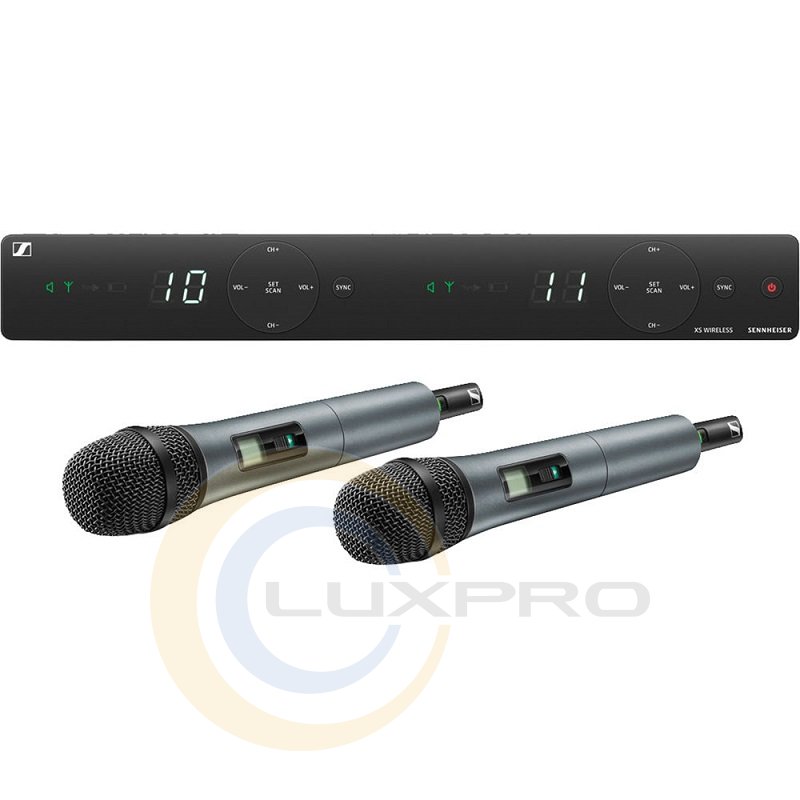 Sennheiser XSW 1-825 DUAL - комплект двоканальної вокальної радіосистеми з двома ручними передавачами Sennheiser XSW 1-825 DUAL оснащеними модулем кардіоїдну динамічного мікрофона e825, і двоканальним приймачем з вбудованими антенами. XS Wireless 1 DUAL - це двоканальна безпровідна система для вокалістів і ведучих. Проста у використанні аналогова УКХ-система в елегантному здвоєному корпусі, з вбудованими антенами і зручним інтерфейсом від популярної серії XS Wireless 1. Двоканальні вокальні комплекти Sennheiser XSW 1-825 DUAL призначених для роботи Ді-джеїв в невеликих клубах, церков і шкіл.