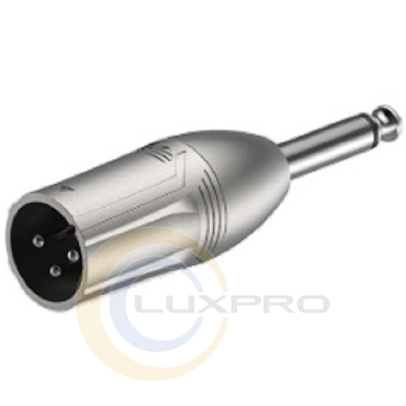 Перехідник Roxtone RA2XMJM - 6.3 Jack mono (тато) - XLR male (тато), металевий корпус, колір нікелевий.