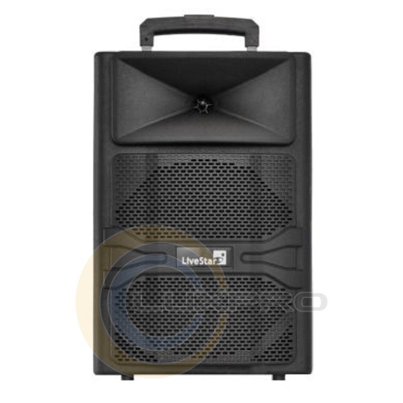 AMC Live Star SB 121 - портативна система звукопідсилення, з вбудованим Bluetooth і бездротовим вокальним мікрофоном. Портативна конструкція з литого поліпропілену з висувною ручкою і коліщатками забезпечує високу надійність і зручність переміщення. Додатковою перевагою даної моделі є інтегрована акумуляторна батарея на 2000 мАч, завдяки якій ви отримуєте до 8 годин автономної роботи (при 60% гучності).