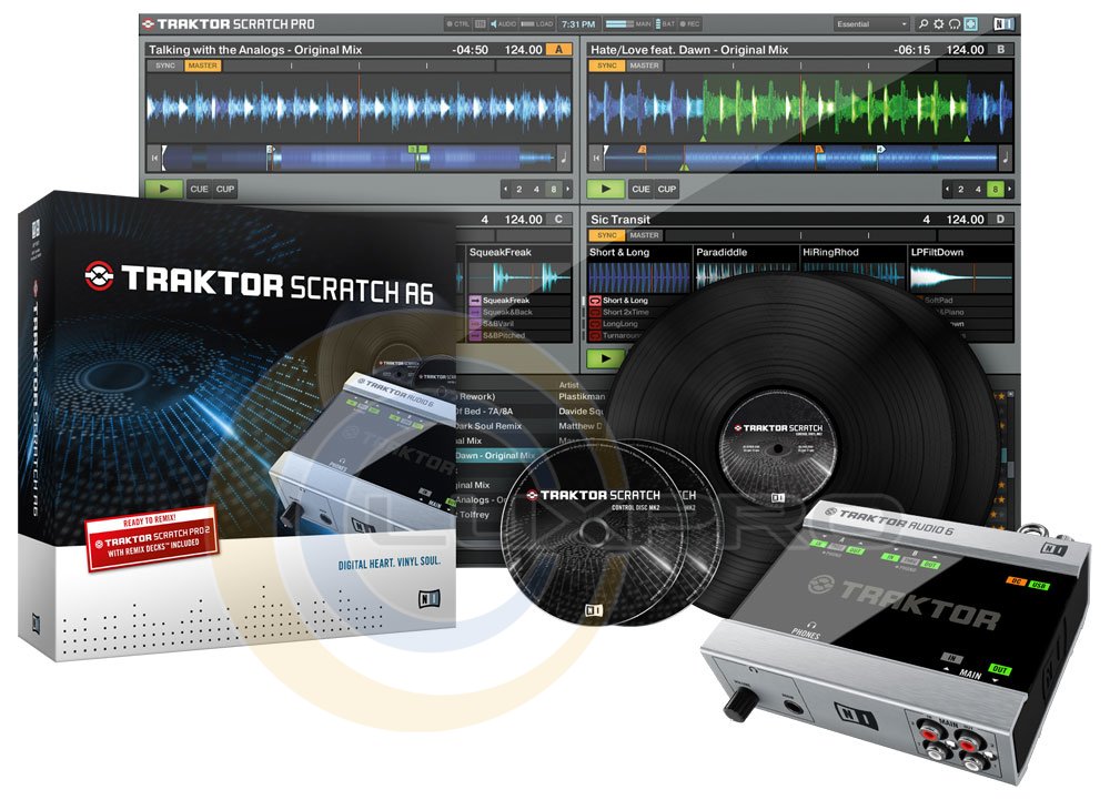 Native Instruments Traktor Scratch A6 - Професійна DVS DJ система, включає аудіоінтерфейс TRAKTOR AUDIO 6, пластинки і CD з тайм кодом, кабелю, програму Traktor PRO 2. Готова до роботи система Traktor Scratch A6 дозволить вам управляти своїми цифровими треками з допомогою вінілу і CD дисків.