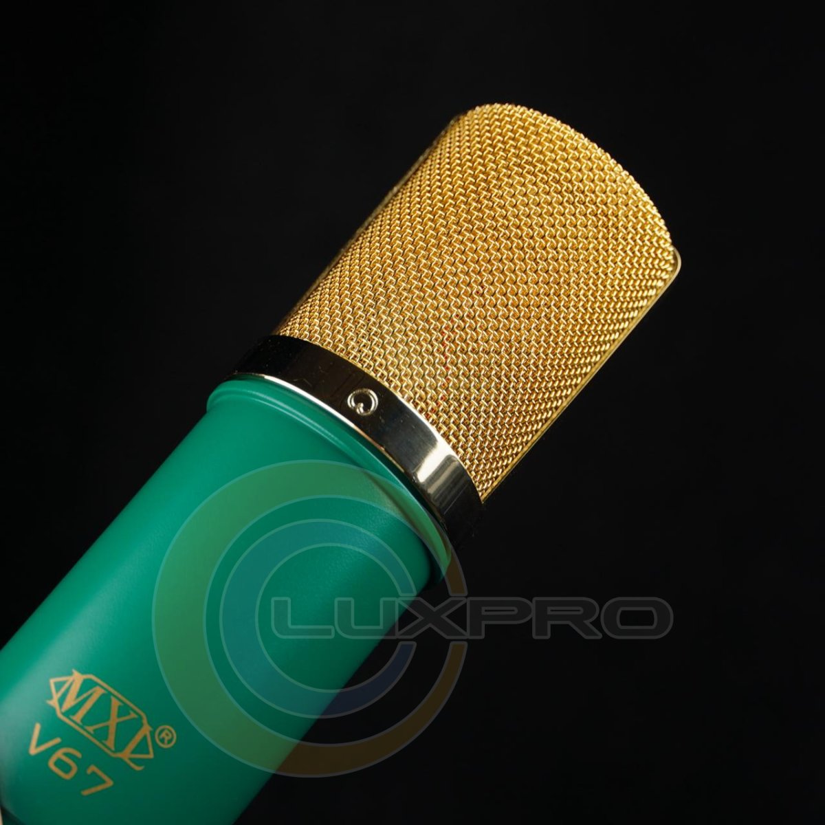 MARSHALL ELECTRONICS MXL V67G - мікрофон, має велику позолочену мембрану (25 мм) товщиною 6 мікрон, кардіоїдну діаграму спрямованості його можливість і характеристик цілком буде досить як для підготовленої домашній студії, так і студії середніх розмірів. Marshall Electronics MXL V67G поєднує в собі FET- схеми (на польових транзисторах) і трансформаторний вихід для максимально відкритого і чистого звуку, а великі твердотільні конденсатори дуже чутливі, вони дуже легко виявляють все найтонші відтінки звучання.