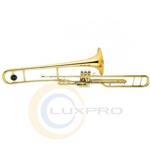 Тенор тромбон Сі бемоль, діаметр розтруба 235 мм, мундштук 13,7 мм, золотий лак, з кейсом.