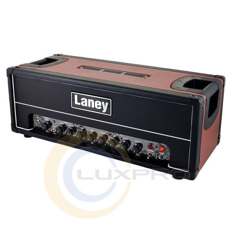 Laney GH100R - підсилювач, класу АВ, 100вт, 2 канали, 4хEL-34, 4x12AX7, цифровий ревербератор, емуляція кабінету, 2-х кнопковий футсвіч, розміри 250х675х285 мм, вага 21,5 кг.
