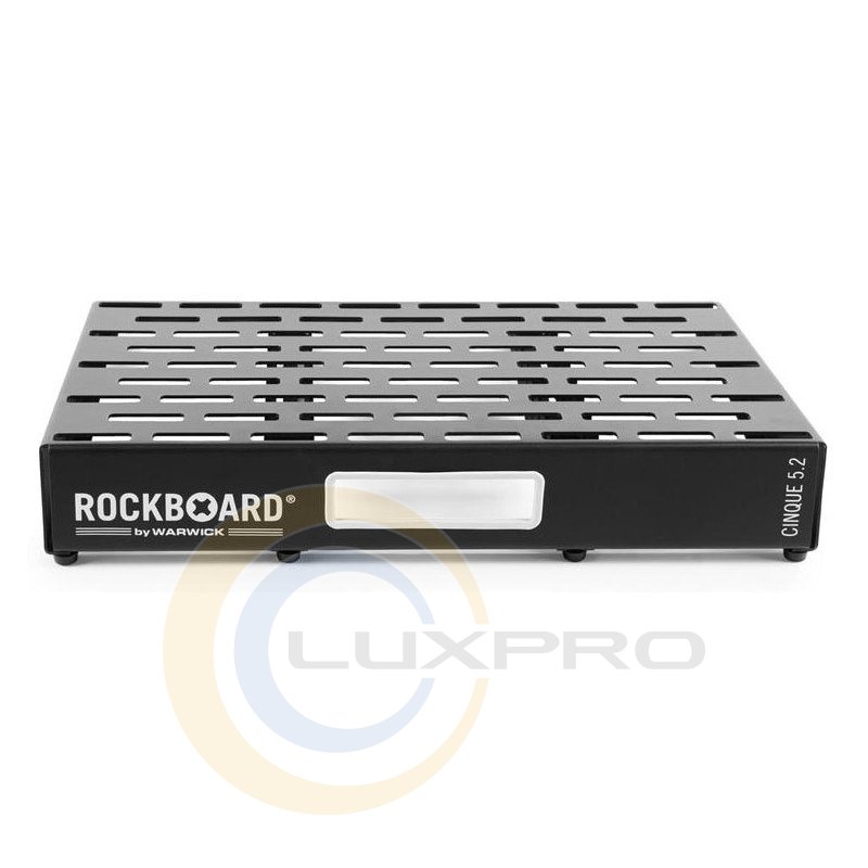 Оригінальна легка жорстка і міцна конструкція заснована на одному зігнутому аркуші алюмінію холодної прокатки і доповнена U-образними вертикальними скобами для додаткової стабільності. Інноваційний слотірованний дизайн майданчика, не тільки відрізняється витонченістю і лаконічністю, але також дозволяє заховати комутаційні кабелі і розмістити від 9 до 15 педалей. А для зручності зберігання і транспортування RockBoard QUAD 5.2 комплектується фірмовою сумкою з ремнем через плече.