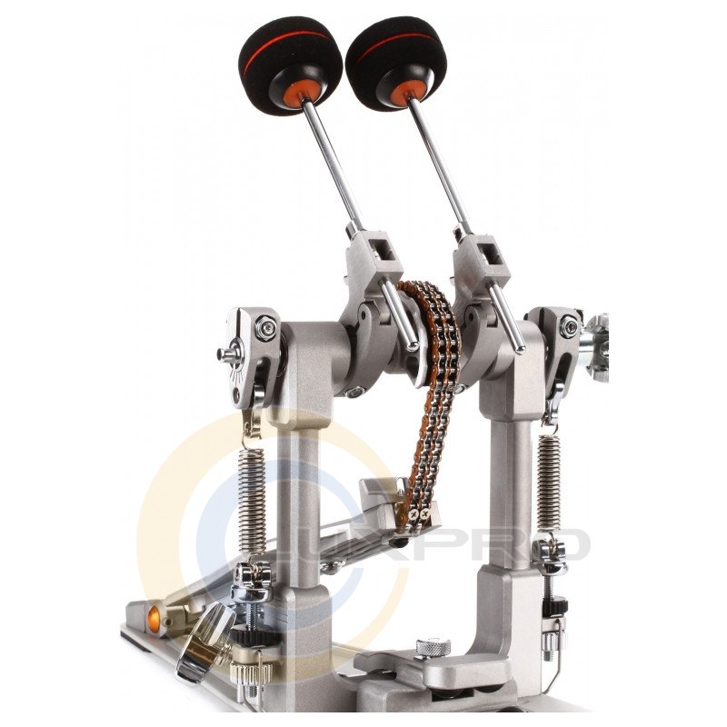 PEARL P-3002С - подвійна педаль "Кардан" Eliminator Demon Drive для бас барабана, регульований подвійний ланцюговий привід, з'єднувальний механізм z-link, подвійний футборд, зміна положення футборда по Вистота, фетровий калатало, кейс в комплекті. Педаль PEARL P-3002С має регульований подвійний ланцюговий привід і подвійний футборд. З'єднувальний механізм типу z-link. Калатала виконані з фетру, і мають округлу форму. Так само є можливість зміни футборда по висоті.