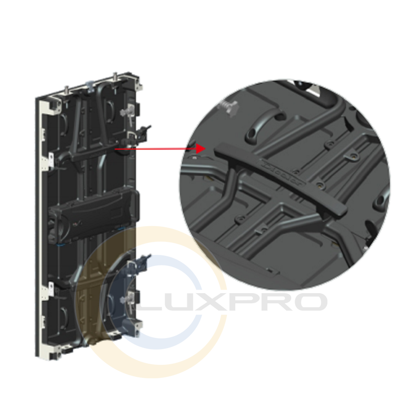 - Захисна конструкція країв кабінету. Краї кабінету мають виступ близько 5мм від землі. Тому вони не ушкодяться при ударі кабінету об підлогу. Ця особливість в значній мірі захищає діоди під час монтажу і демонтажу.
