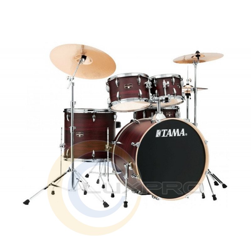 TAMA IE58H6W-BWW - ударна установка з 5 барабанів серії Imperialstar, матеріал тополя 8мм, 6-шарові, конфігурація 18х14, 10х7 і 12х8, 14х13, 14х5, набір хардвера (стійки, педаль, стілець, подвійний тому-холдер), фурнітура хром, колір Burgundy Walnut Wrap.Характеристики: