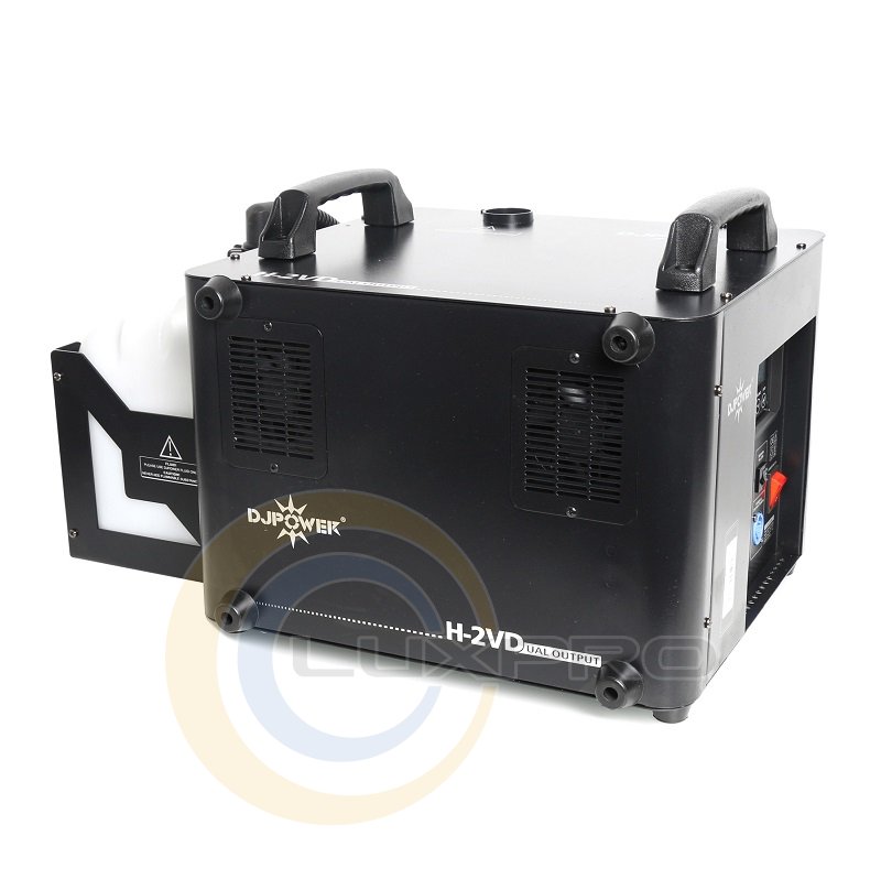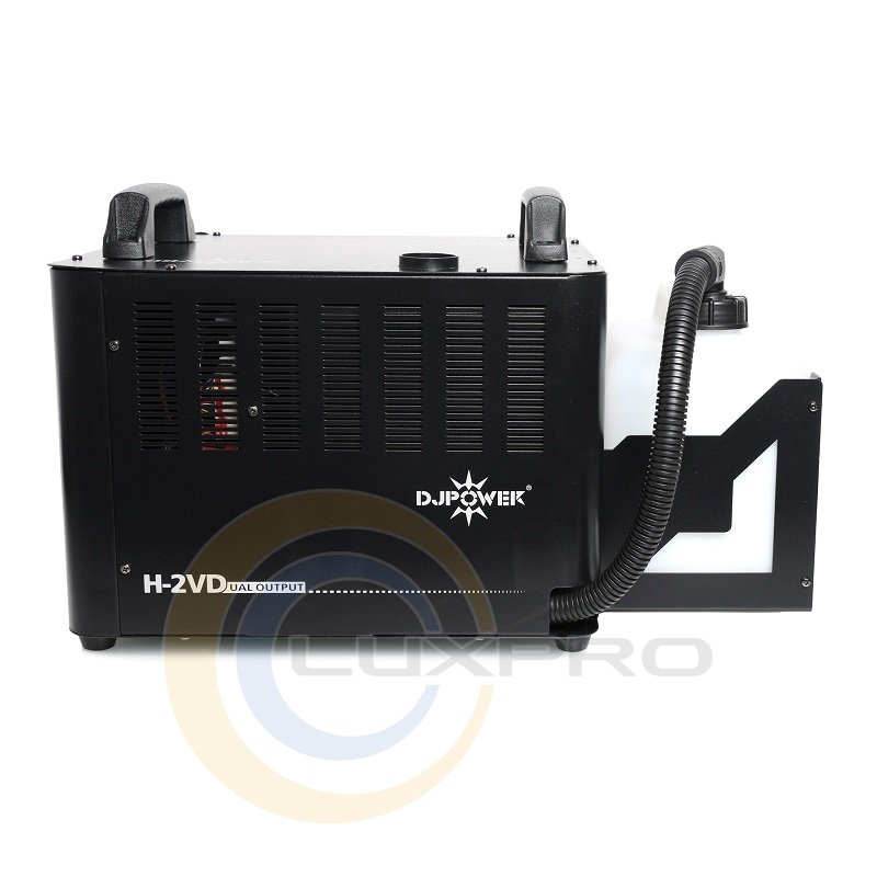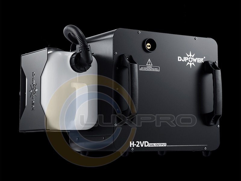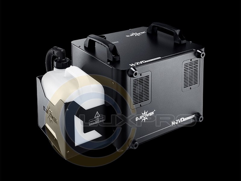 H-2VD - це перша в світі вертикальна противотумана машина з подвійним виходом LED Super-Jet, спеціально розроблена для професійної сцени, з унікальною технологією "super-jet", вихідна швидкість і сила якої можуть бути навіть порівняти зі струменем CO2. H-2VD - новітній оновлений продукт DJPOWER з запатентованою технологією «super-jet», вдвічі швидше, але компактніше. Зручний для користувача РК-дисплей і управління, він ідеально підходить для великих клубів, великих сценічних постановок, компаній з прокату та конференції з випуску продукції.