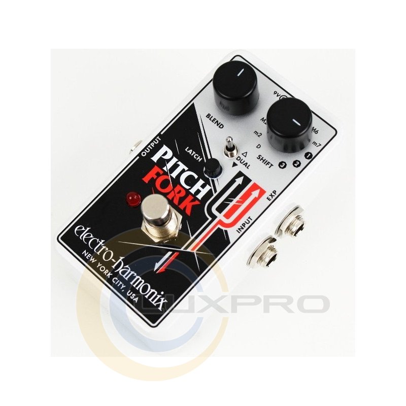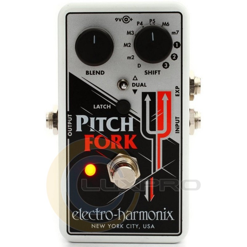 Педаль Electro-Harmonix Pitch Fork - поліфонічний октав-генератор / пітч-шіфтер / гармонайзер. Педаль Electro-Harmonix Pitch Fork має 11 фіксованих положень, які дозволять транспонувати сигнал фіксовано в трьох режимах: вгору, вниз, а так само одночасно вгору і вниз. Підключивши педаль експресії, пітч-шифтом можна управляти в режимі реального часу. Electro-Harmonix Pitch Fork - поліфонічний, тобто прилад «розуміє» не лише поодинокі ноти, а й складні інтервали і акорди.Футсвітч Electro-Harmonix Pitch Fork має 2 режими роботи - Latch і Momentary: ефект можна вмикати / вимикати на тривалий період в режимі Latch або застосовувати на кілька секунд натискаючи і відпускаючи футсвітч (вкл / викл відповідно) в режимі Momentary.Electro-Harmonix Pitch Fork має ручку Blend, який завідує балансом сигналу, де в крайньому лівому положенні сигналу з ефектом не чути, а в крайньому правому - є тільки ефект без чистого сигналу. Можна використовувати в комбінації з різними фузамі і перевантажити, а також для зниження ладу, що не перебудовуючи гітару.З підключеної педаллю експресії ELECTRO-HARMONIX PITCH FORK в режимі октава / 2 октави вгору або вниз виробляє звуки класичного Whammy. Electro-Harmonix Pitch Forkімеет режим Micro Detune, який «засмучує» сигнал менше, ніж на півтону, виробляючи таким чином ефект хоруса. Педаль поставляється з джерелом живлення EHX 9.6DC-200mA, а також може працювати від батарейки на 9 В.Характеристики:
